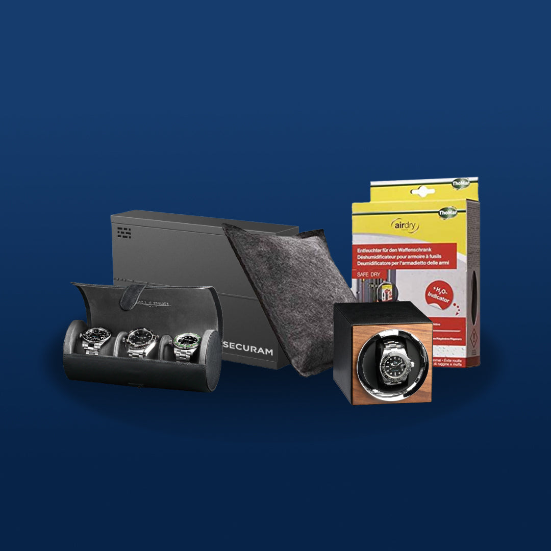 Enhance the functionality and care of your safe with specialized accessories such as watch winders, dehumidifiers and discreet monitoring devices.