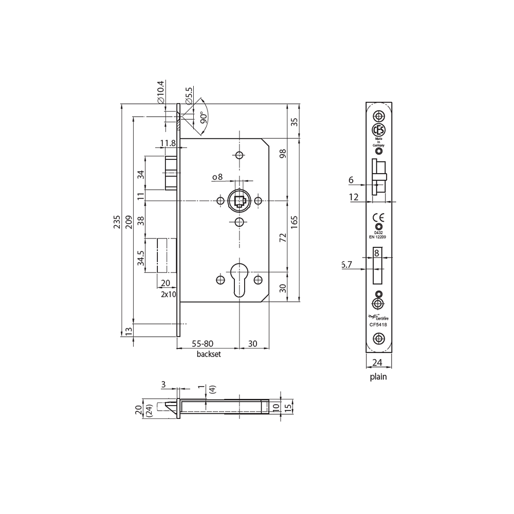 • Backset 55mm
