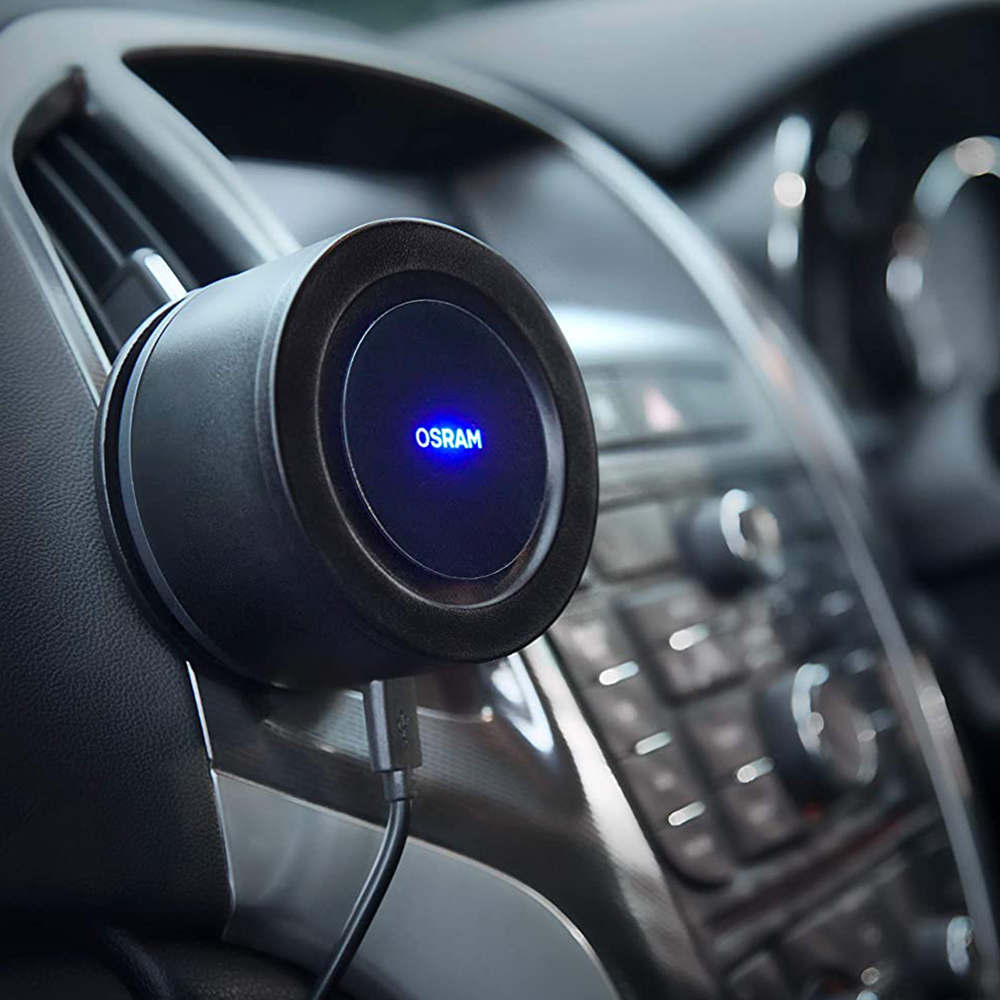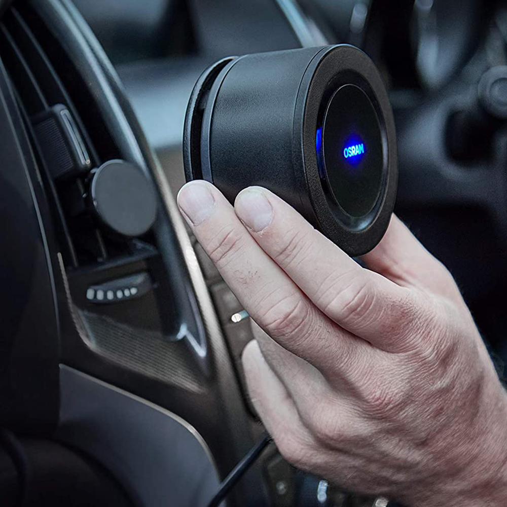 The Airzing destroys viruses and bacteria and ensures clean and filtered air in your vehicle. Continues filtering and air purification while driving.